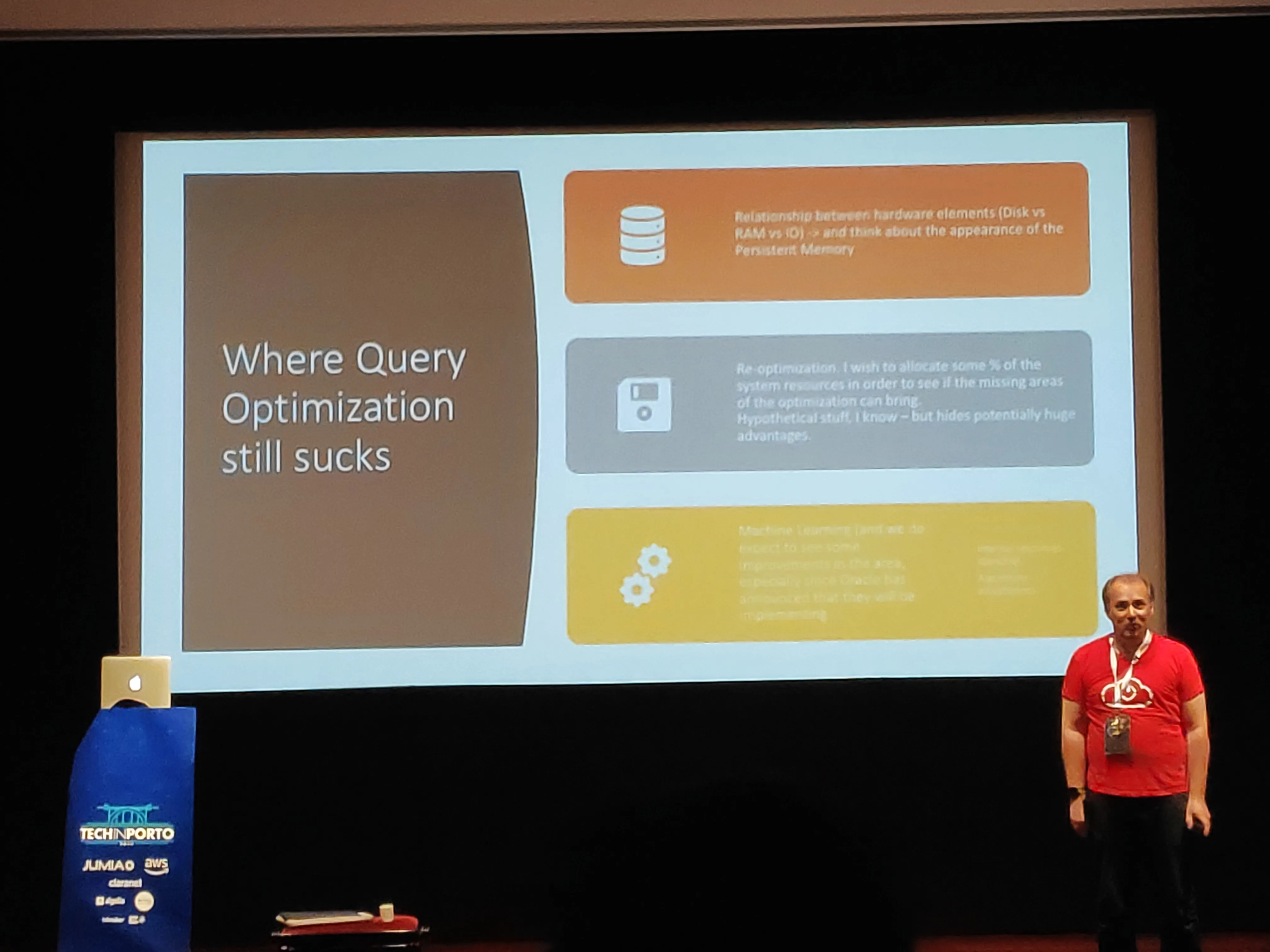 I’d say Niko is the most knowledgeable SQL developer I ever met. I truly liked his humor and how he handled the crowd, making a talk that could very well put everyone to sleep, into one with very good tips and that pushed us to question the black magic of query planning.